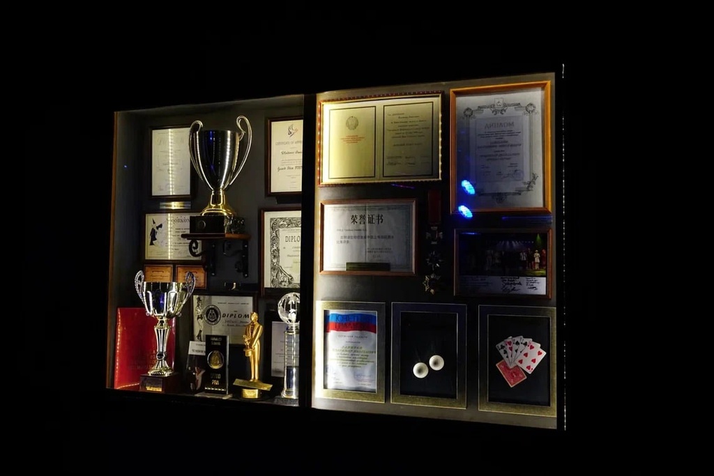 Гости волшебного пространства смогут увидеть костюмы артистов оригинального жанра, реквизит, награды Чемпиона мира по магии Владимира Данилина, библиотеку с книгами об истории фокусов.