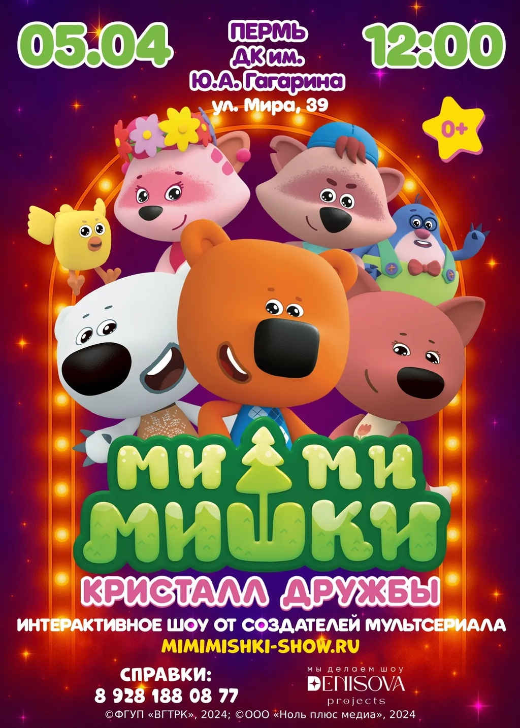На сцене — Кеша, Тучка и Лисичка! Они отправятся в увлекательное путешествие в поисках Кристалла дружбы, а дети станут частью этой доброй сказки! Смех, песни, танцы и настоящая магия — всё, чтобы ребёнок забыл про экран и поверил в чудо! Что ждет вашего ребенка: - Незабываемая встреча с любимыми героями! - Интерактивные развлечения! - Простой сюжет для детского восприятия! - Реалистичные костюмы и волшебные декорации!