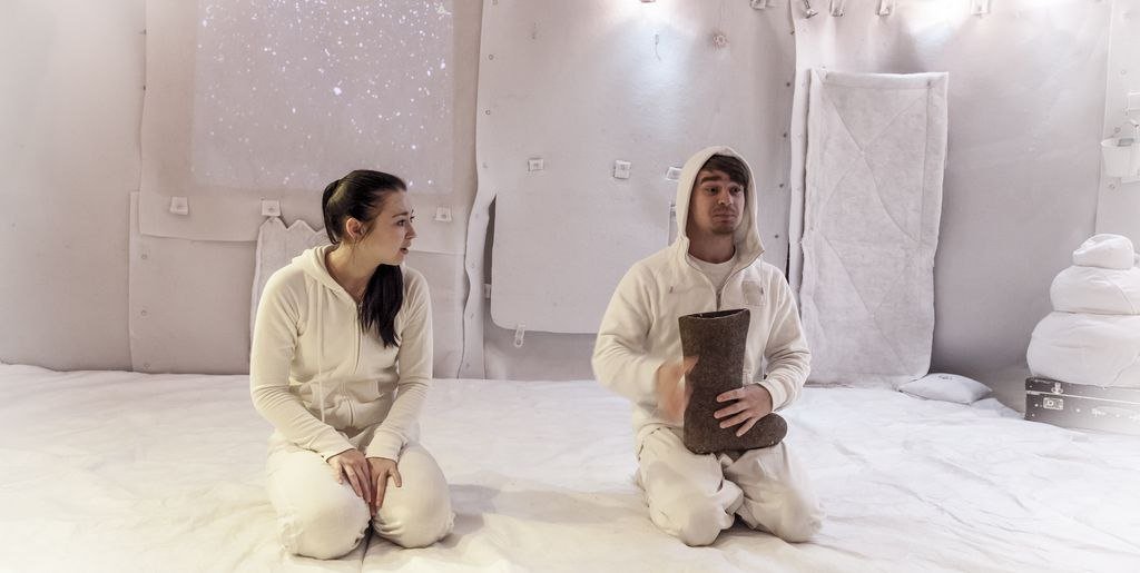 Много тактильной игры для маленьких зрителей в очень уютном белом пространстве. Всё самое лучшее, волшебное, что может быть в зиме, есть в нашем спектакле!