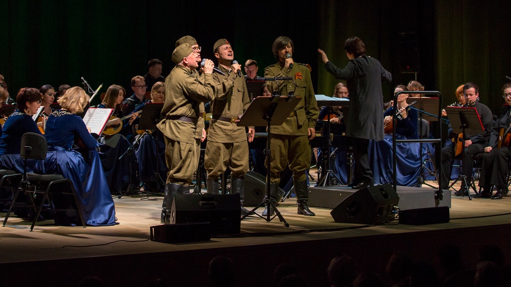 В Большом зале прозвучит священная музыка нашей памяти. Оркестр русских народных инструментов имени В. А. Салина, Ансамбль солистов «Хорус-квартет» объединяются, чтобы исполнить «Музыку Победы». В этот вечер оживут мелодии, которые звучали на фронтах и в тылу, в минуты надежды и тихой скорби. Знакомые до слез интонации, песни, прошедшие через окопы и дошедшие до внуков, — в них вся история великого народа.