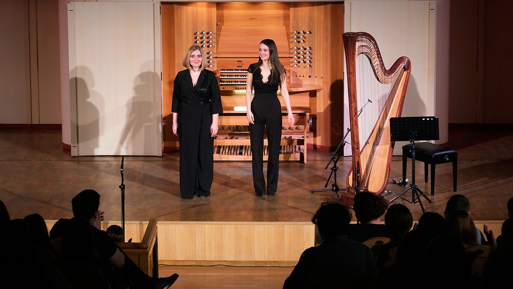 Чарующий дуэт органа и арфы в программе всемирно известных исполнителей, лауреатов международных конкурсов Олеси Кравченко (орган) и Надежды Сергеевой (арфа).
