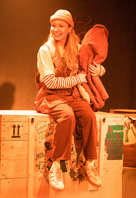 течение спектакля зрители становятся свидетелями того, как Каштанка сливается